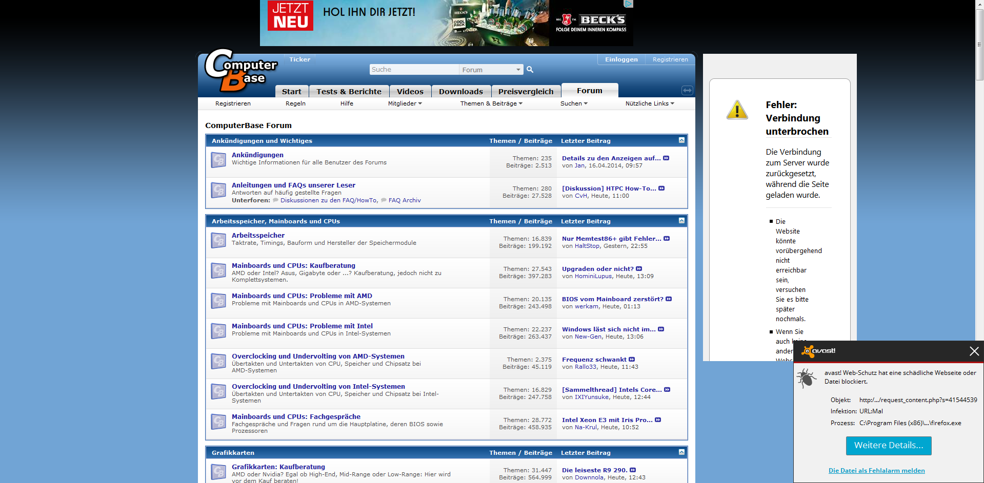 Soeben ist es wieder passiert. Erneut wurde ein Werbebanner von Avast geblockt. Passiert das nur bei mir oder wie? Ist doch komisch das Ganze. Ihr seid einer der ganz wenigen Seiten, bei denen der Adblocker aus ist, aber unter diesen Umständen kann ich nicht garantieren, dass das auch in nächster Zukunft so bleibt. So leid es mit tut.