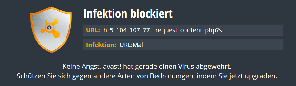 Mehr Infos habe ich nicht. Wenn ich auf die Seite gehe, meldet sich Avast wieder mit dem Hinweis, das eine Infektion blockiert wurde. Sehr komisch das Ganze. Ich gehe mal von einem Fehlalarm aus, aber ich möchte dennoch nicht Avast deaktivieren um zu schauen, was sich dahinter verbirgt...