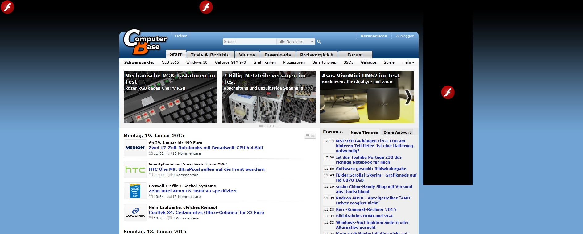 Hm, die Werbung hab ich bisher noch nie bekommen, dafür gefühlt in 11 von 10 Fällen Amazon... ist das der Fallback falls kein Flash vorhanden ist? (und gäbs hier ansonsten wirklich so viel Flash Werbung?)