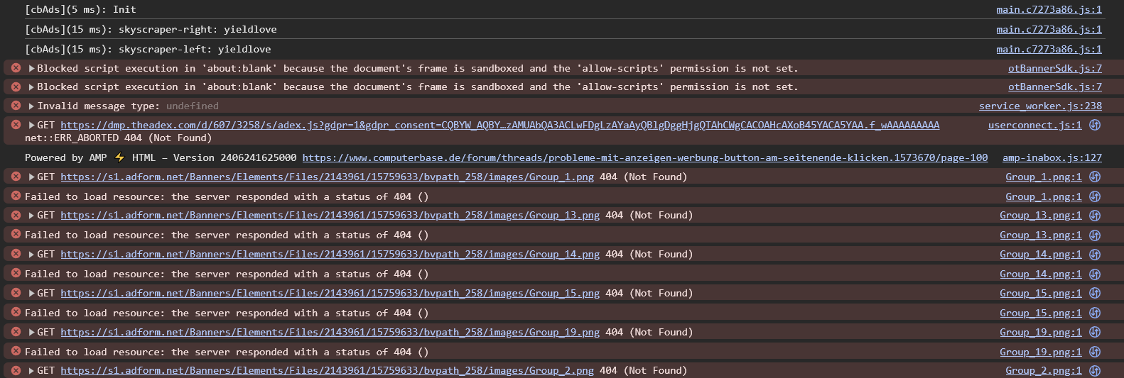 Dass Werbebanner allerhand Warnungen oder Fehlermeldungen werfen ist leider nichts ungewöhnliches, hat vermutlich nichts mit dem Problem hier zu tun. Bitte probier es wie zwei Beiträge weiter oben erwähnt mal mit einem neuen Browser-Profil.