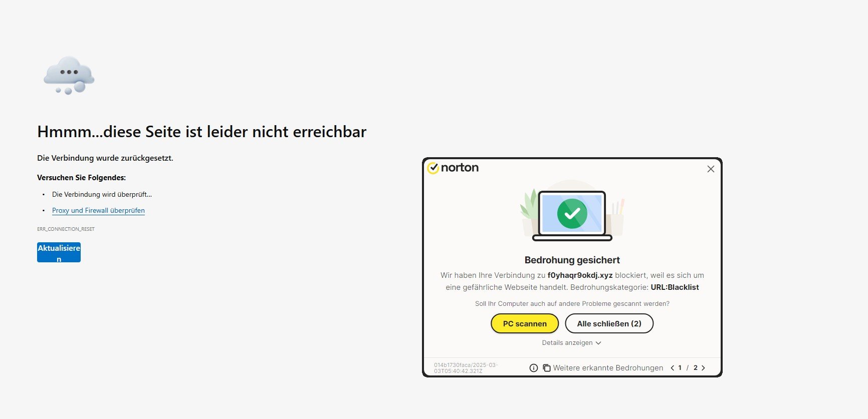 Gemacht.. Jetzt geht die Werbung sogar gar nicht mehr weg. Irgendein Outlet-Center bei Straßburg.Steffen schrieb:Bitte besagten Button klicken, wenn das Problem nochmal auftritt