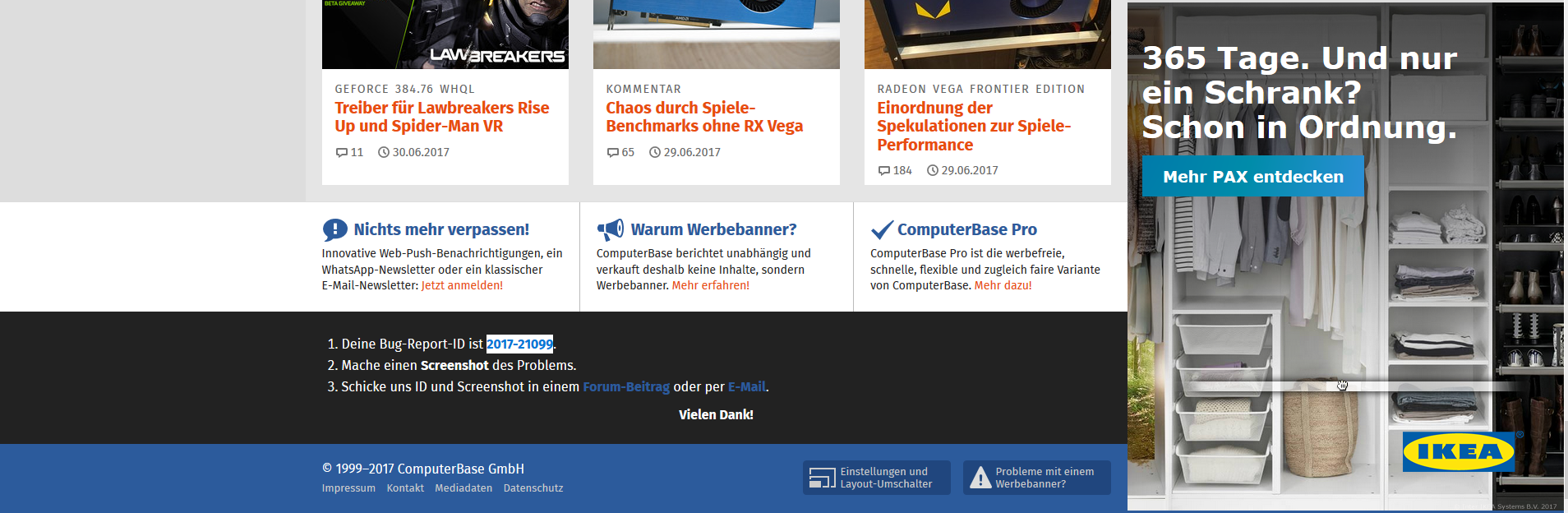 Probleme mit Anzeigen/Werbung (Button am Seitenende klicken!)