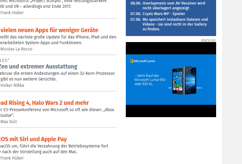 @Steffen: Mich stört nicht, dass die Anzeige mitscrollt (Das macht ja fast jede Werbung), sondern die wilden Animationen, die angezeigt werden sobald man scrollt.