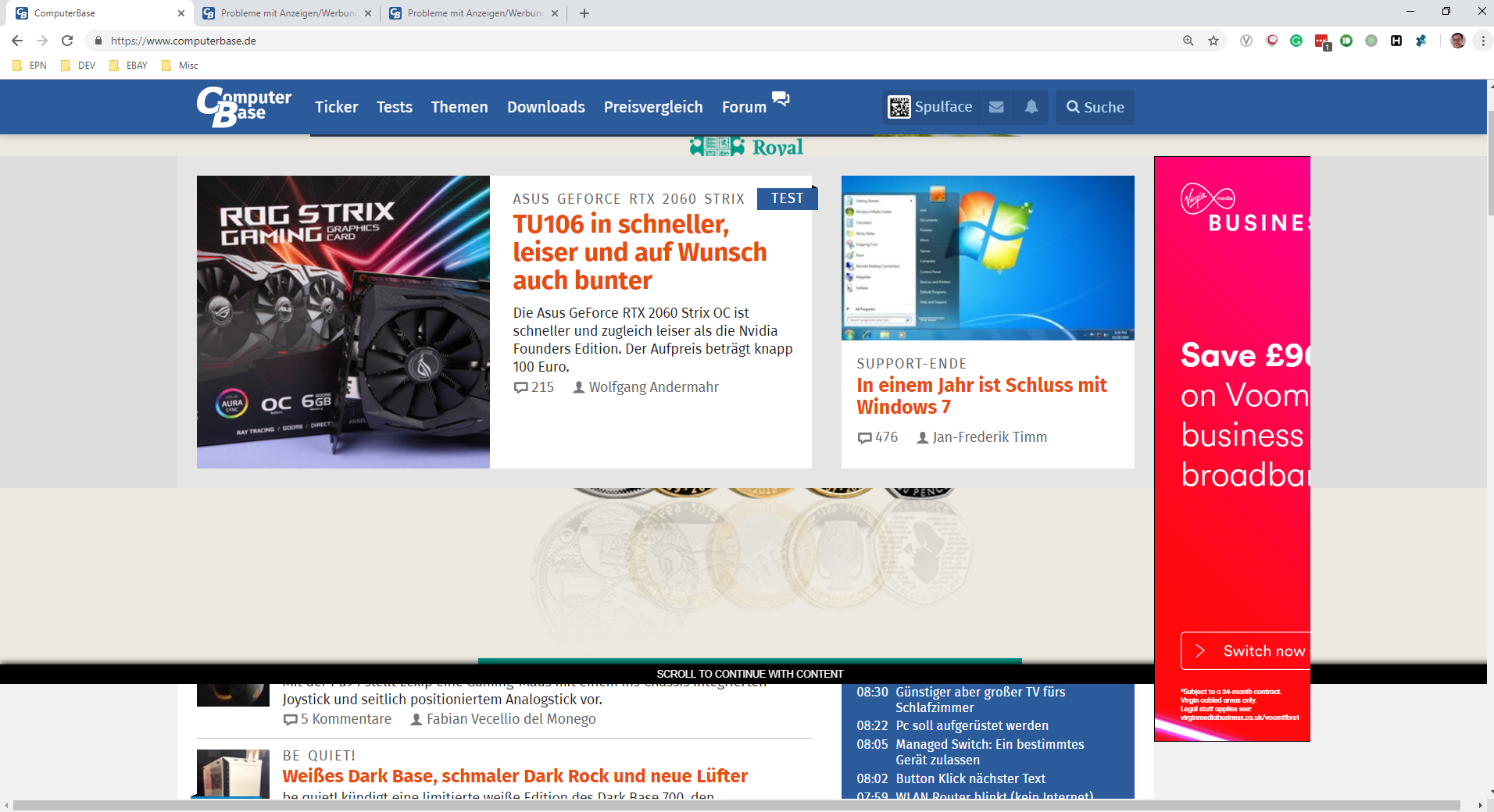 Probleme mit Anzeigen/Werbung (Button am Seitenende klicken!)