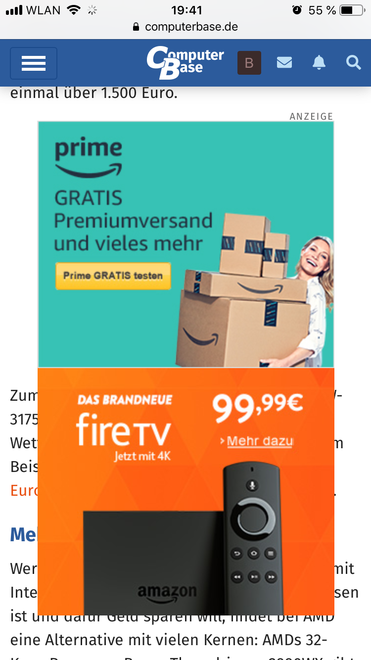 Bei der zweiten und dritten Anzeige handelt es sich zwar um von uns bereitgestellte Fallback-Anzeigen, aber die werden einer ersten Analyse des Bug-Reports zu Folge eindeutig von unserem Vermarkter geladen bzw. ausgeliefert. Ich habe unseren Vermarkter informiert.
