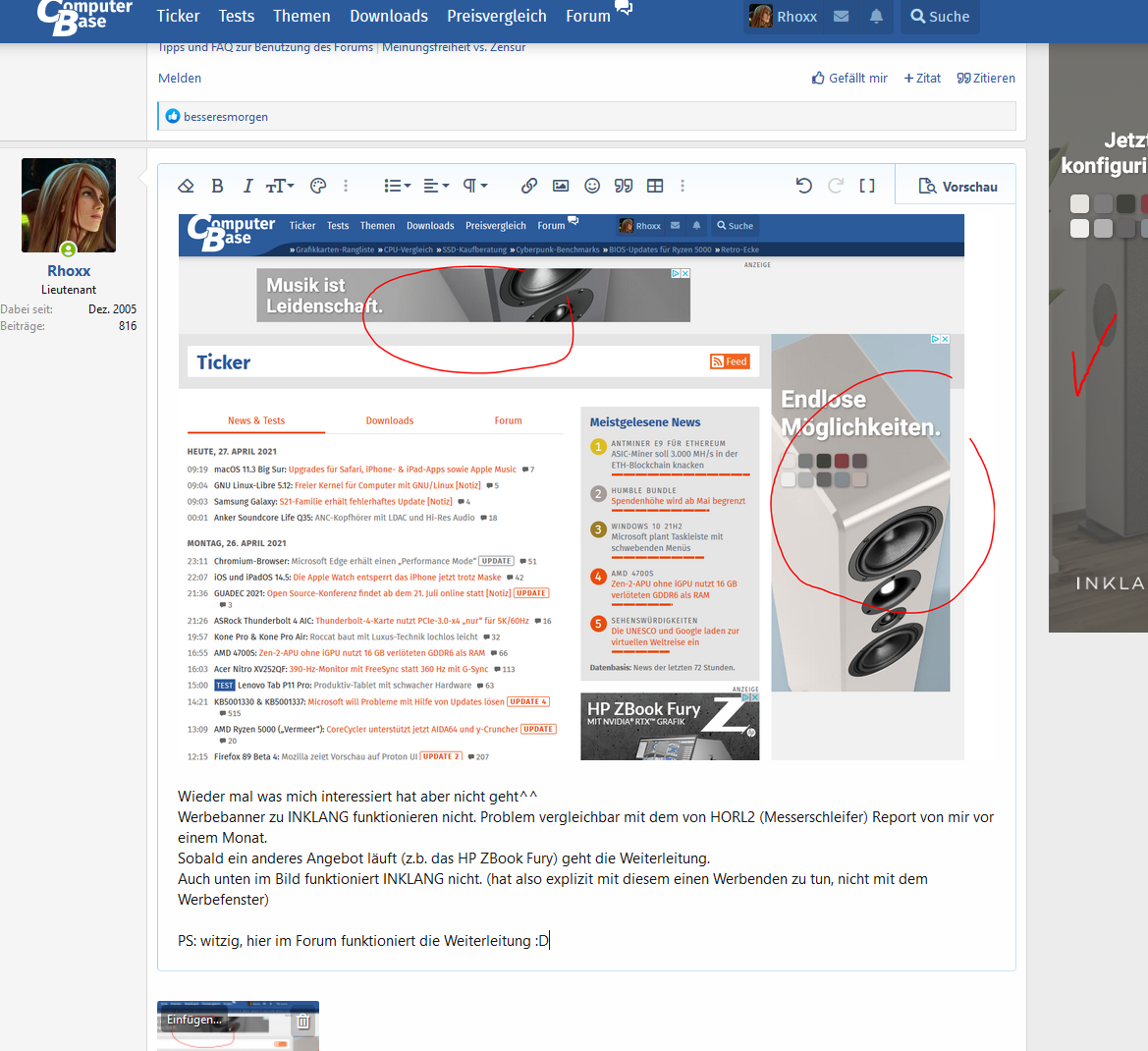 Werbebanner zu INKLANG funktionieren nicht. Problem vergleichbar mit dem von HORL2 (Messerschleifer) Report von mir vor einem Monat.