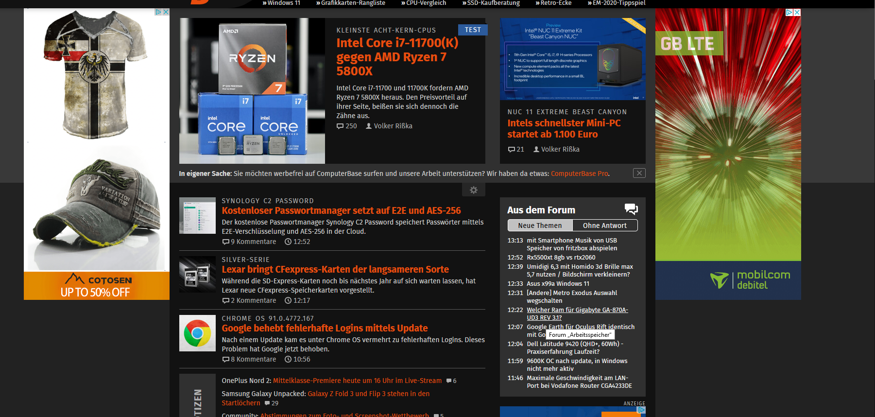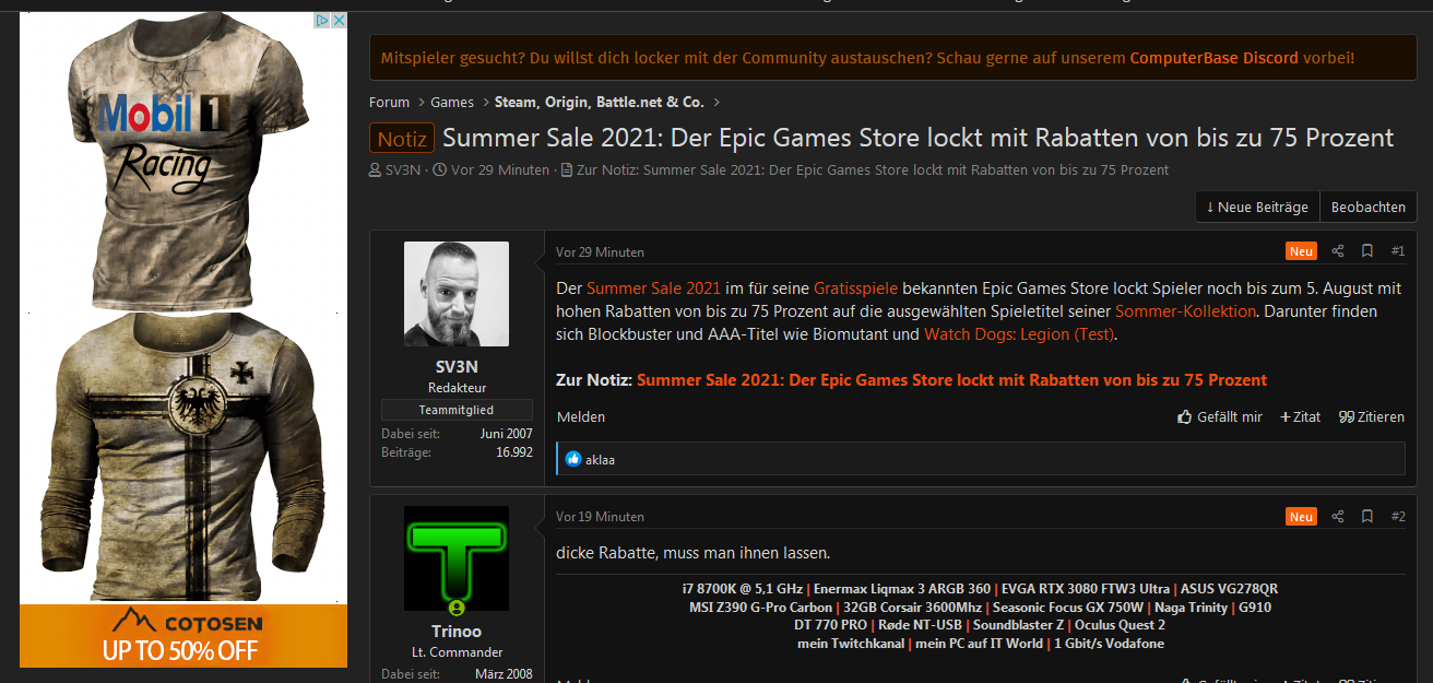 Ich habe es gerade nochmal ausprobiert, die Elgato-Werbung bekommen man aktuell ja recht schnell zu sehen, wenn man mit einem frischen Browser-Profil auf ComputerBase geht: Weder in Chrome 92 noch in Firefox 90 kann ich das reproduzieren. Egal ob Hauptseite oder Forum. Egal ob ich Zoom nutze oder nicht. Irgendwas muss bei dir anders sein als in einem Default-Profil. Hast du eine Idee?
