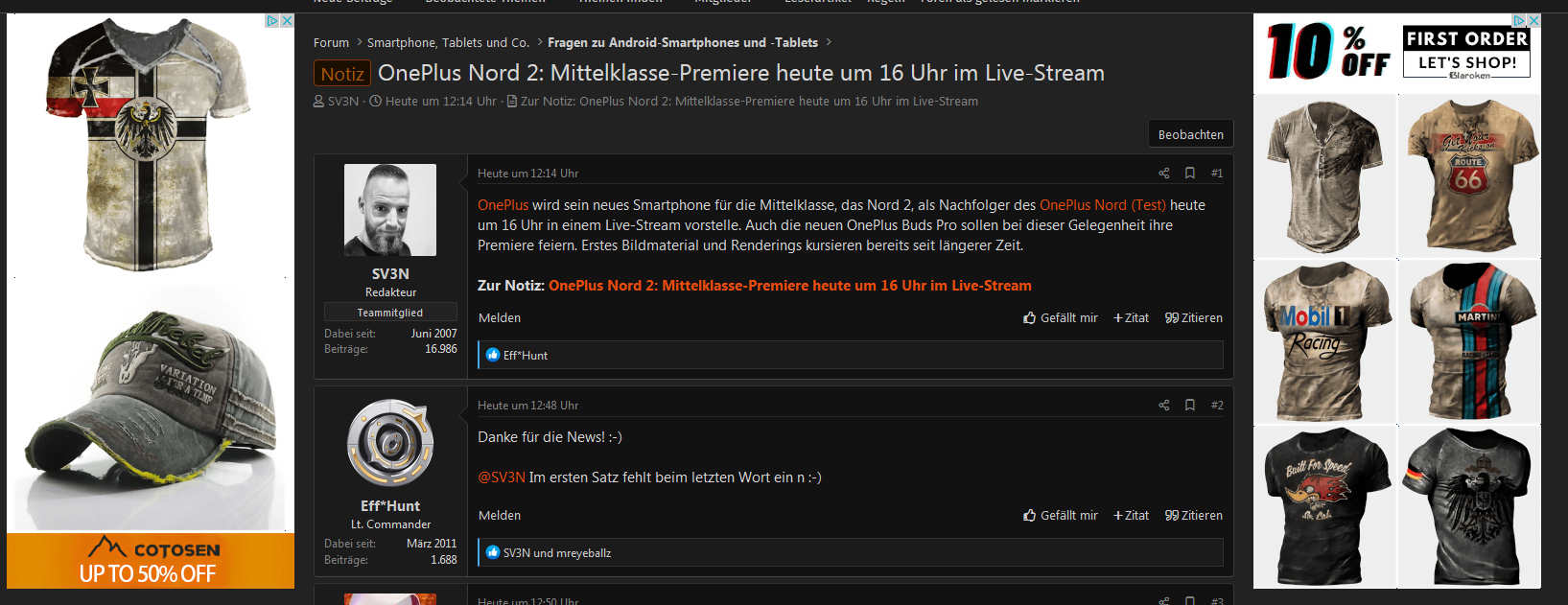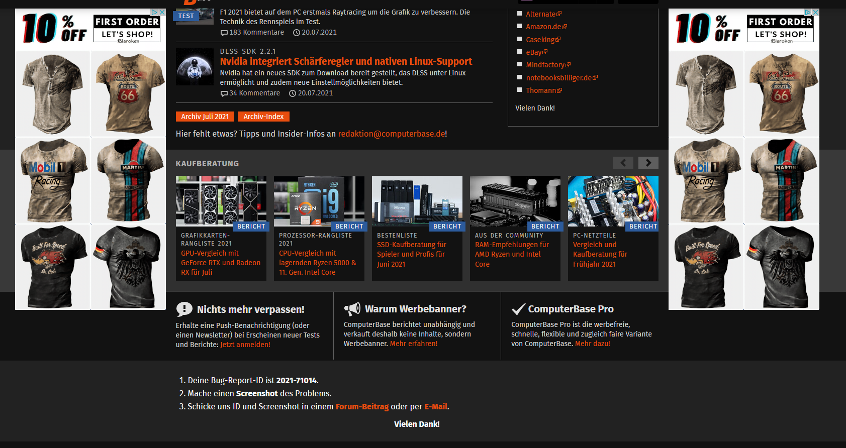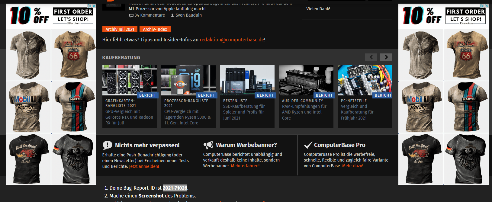 Bin mir nicht sicher, ob es eure Regeln von Werbungen verstößt, aber gibt da mehrere Bekleidungswerbungen, die schlecht gestaltet sind und auf weißen Flächen schwarze Punkte zu sehen sind. Ich hatte dadurch ein Schock bekommen, dass da plötzlich mehrere tote Pixel dazu kamen. Diese sind aber auf einem Screenshot zu sehen.