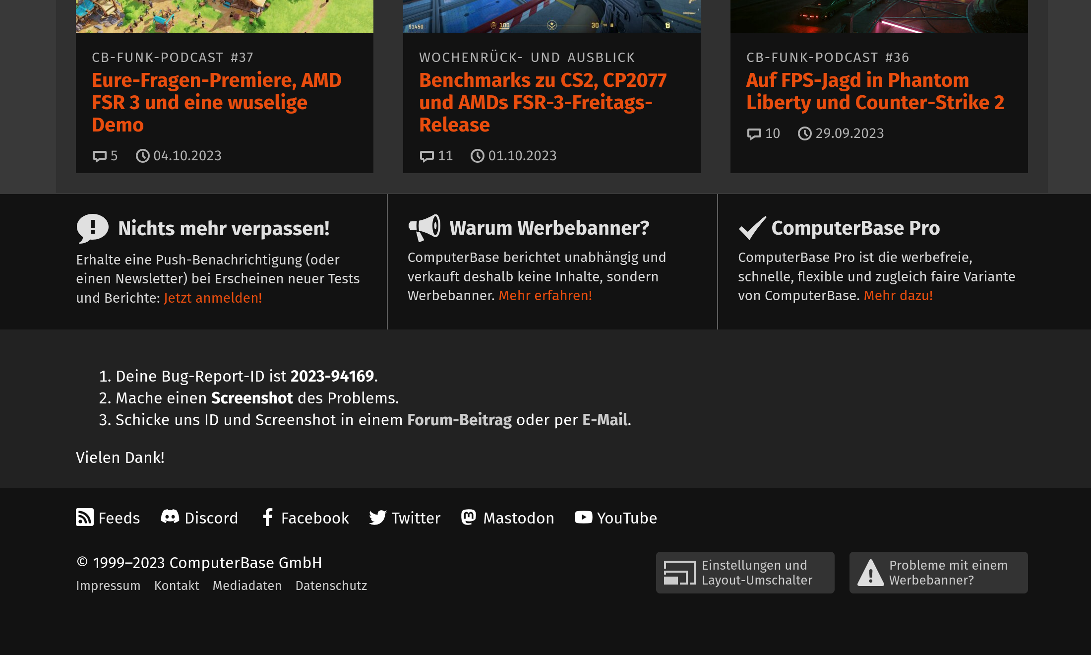 - Deine Bug-Report-ID ist 2023-95446.