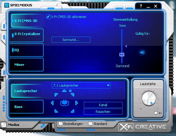 Stereo Sound habe ich schon und auch die treiber dürften passen. Also ich habe sehr wohl den Testsound (vorne links, vorne rechts,.. etc.) auf allen Boxen aber diese CMSS Funktion, dass ich beim Musik abspielen auch auf meinen ganzen anderen Boxen Musik habe, bekomme ich ums verrecken nicht zum Laufen