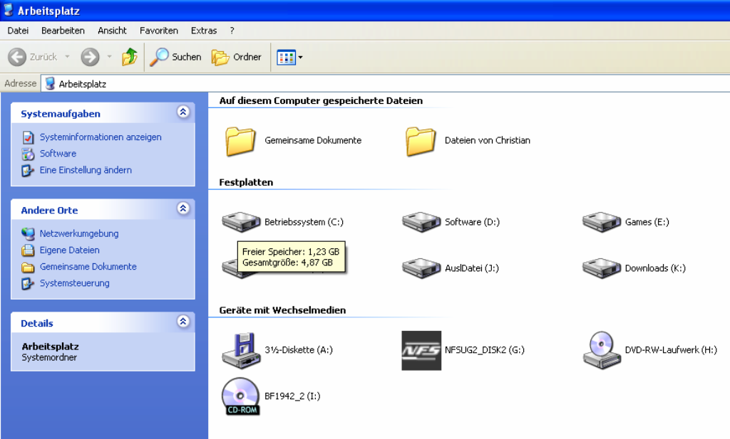 Zu meinem Entsetzen mußte ich feststellen, daß wenn ich auf START---Arbeitsplatz---Betriebssystem gehe nur 500MB statt 2GB freier Speicher angezeigt werden.