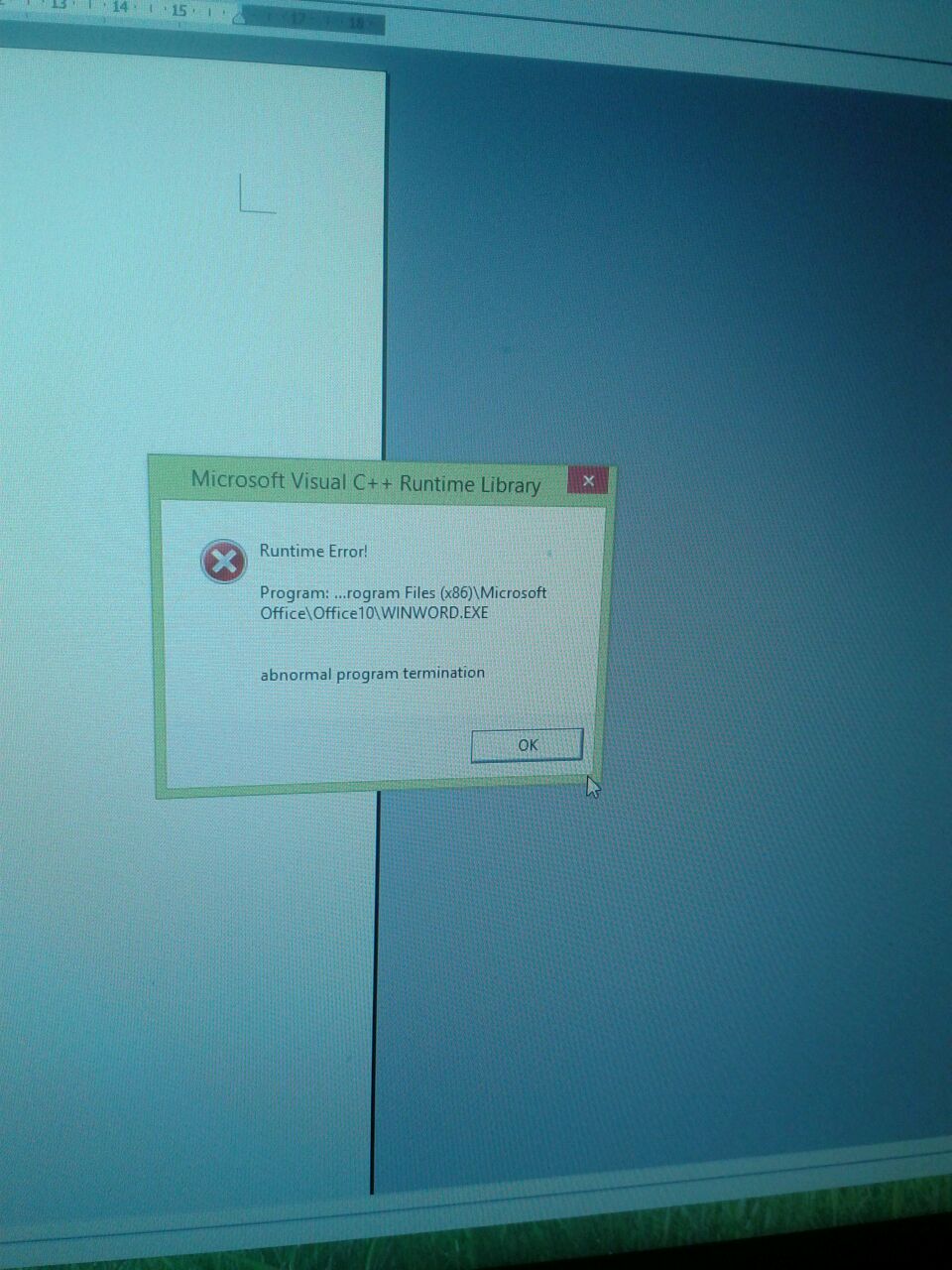 Immer wenn er z.B. ein Word-Dokument abspeichern möchte, stürzt das Programm mit einer Fehlermeldung von Microsoft Visual C++ ab: