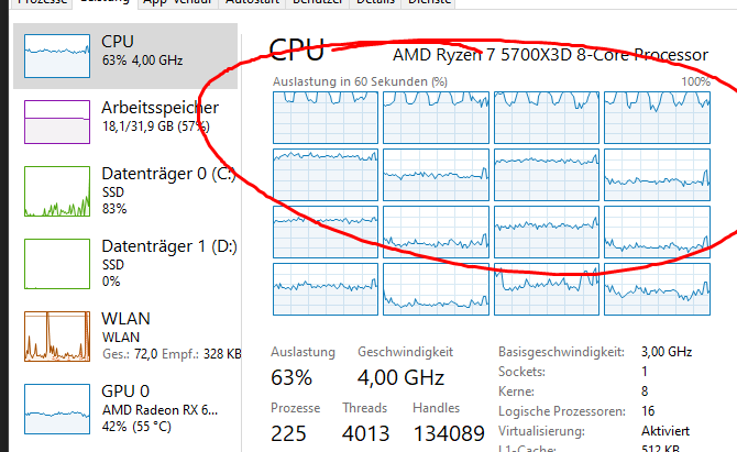 Da musst gucken welche Einstellungen du vornehmen muss um CPU bei Raids zu entlasten.