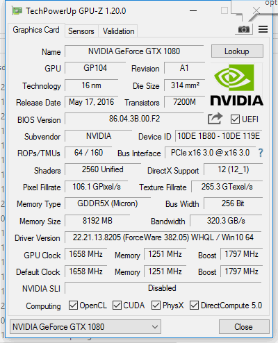 GPU: KFA² GTX 1080 EXOC (ASUS GTX 1080 STRIX)