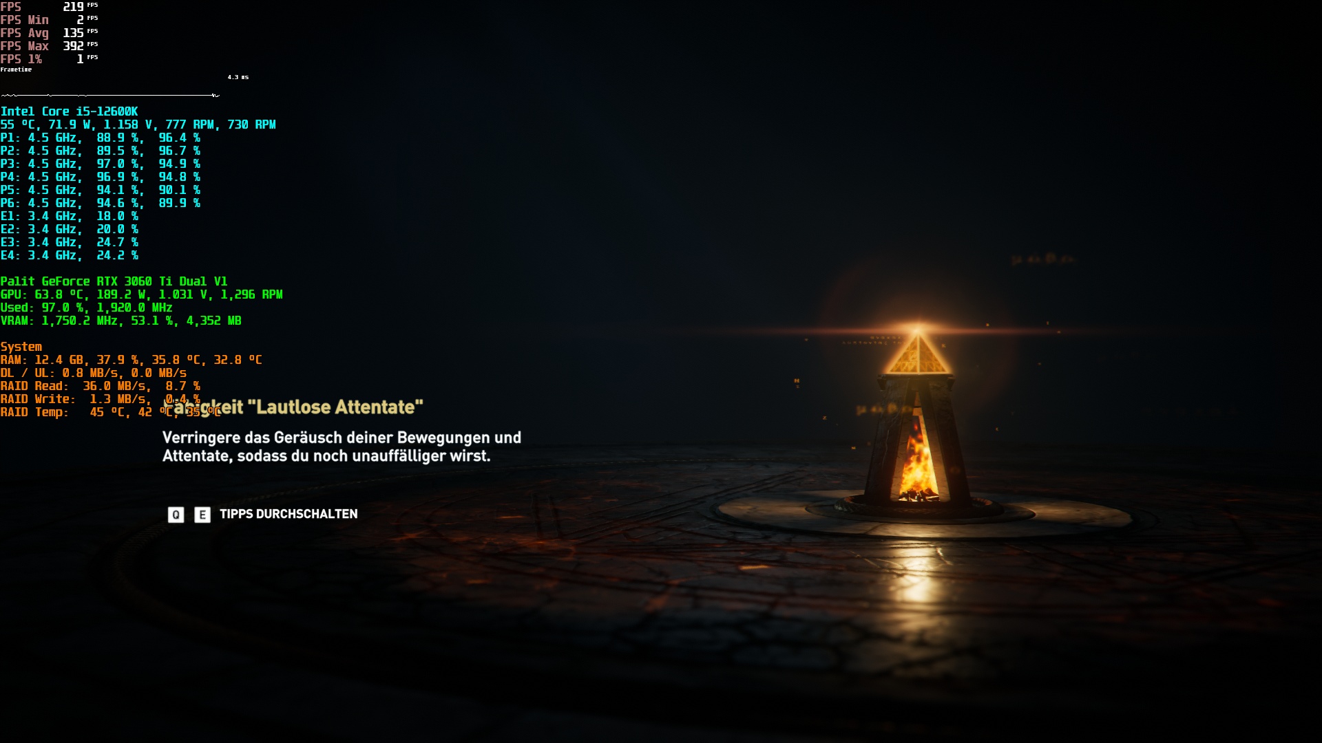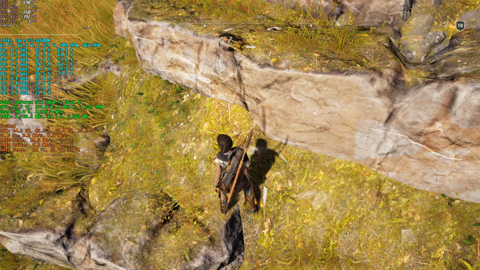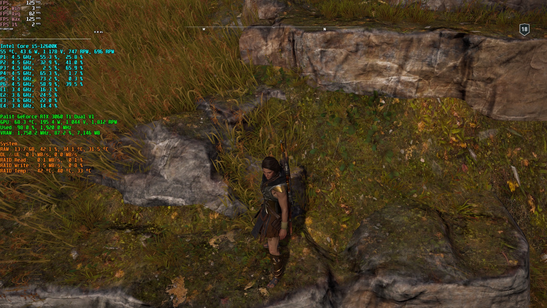 Nun habe ich zwar kein Assassins Creed Valhalla, jedoch Odyssey am Start, das die gleiche Engine besitzt. Praktischerweise habe ich - genauso wie du - auch eine RTX 3060 Ti am Start, also lass uns doch mal nachstellen, wie das bei mir so aussieht.