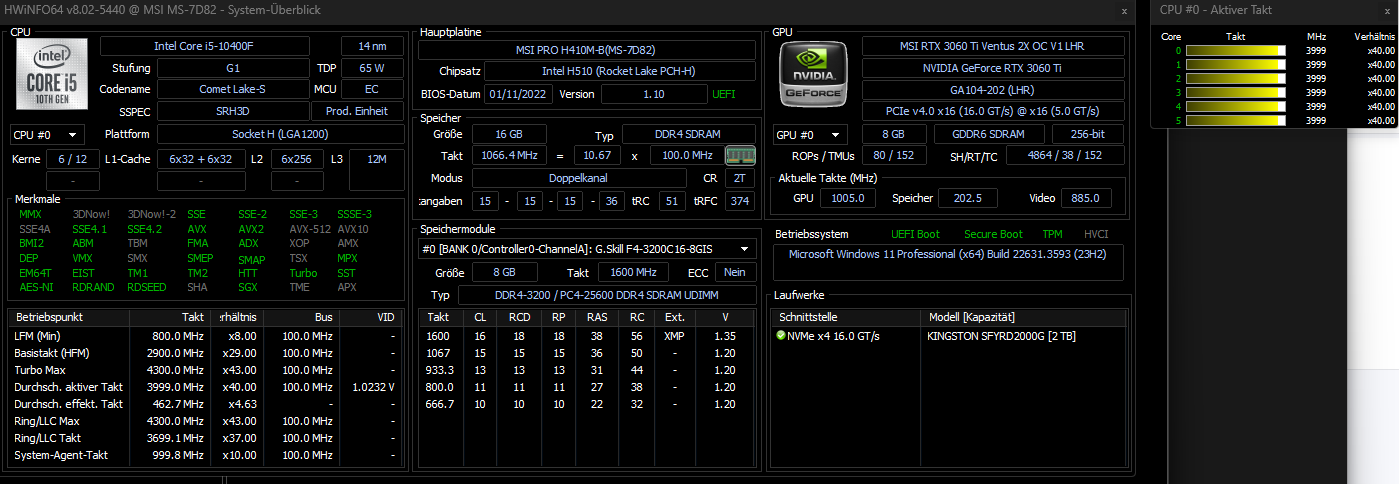 Letztlich bleibt dann nur noch die Frage offen: wie kühlst du deinen 10400F? Entweder ist dieser selbst mit deiner eigentlich sehr unproblematischen CPU überfordert (Boxed Cooler von Intel?) oder aber falsch/schlecht montiert (nicht festgezogen, schräg montiert, Lüfter defekt/falsch montiert, WLP bedeckt nicht den gesamten Heatspreader, etc.).
