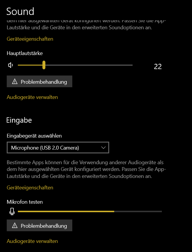 bis vorgestern funktionierte mein Mikrofon unter Windows 10 noch einwandfrei. Heute geht nichts mehr. Der Mikrofontest unter Einstellungen -> System -> Sound ist erfolgreich (der Balken springt im Takt meiner Worte), aber die Klangdaten kommen scheinbar nicht in der App an (obwohl die unter Einstellungen -> Datenschutz -> Mikrofon Zugriffsberechtigt ist). Siehe auch angehängter Screenshot: Der Balken schlägt aus, Skype ist berechtigt aber in Skype selbst kommt kein Ton an.