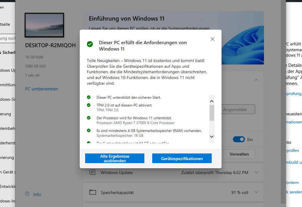 ich bekomme win11 nicht installiert. Die Systemintegritätsprüfung stellte korrekt fest das mein Rechner die Anforderungen nicht erfüllt. Nun habe ich im Bios TPM Aktiviert und trotzdem meint die Windows Integrationsprüfung das es nicht erfüllt ist. Das extra tool was es von Windows gibt sagt das aber auch das alles erfüllt ist.