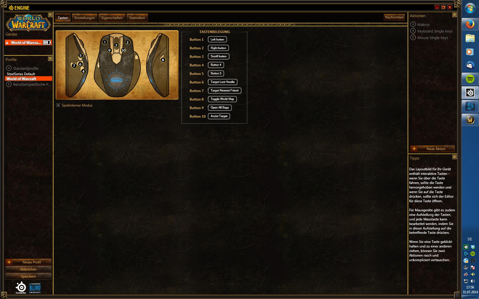 Wenn ich aber die Ingame config benutzen will um meine Aktionsleisten auf Mausknöpfe zu binden, bindet er die voreingestellten Knöpfe(zb. B für alle taschen öffenen) und löscht mir somit die eigentliche Belegung.