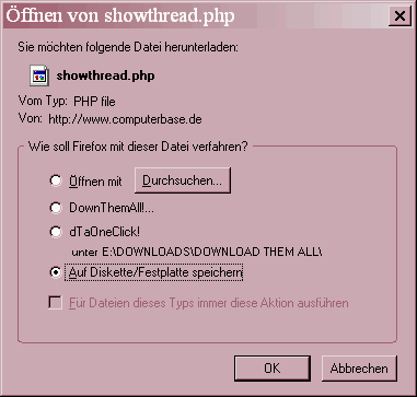 Irgendwas stimmt hier in der Tat nicht, ich bin hier mit dem FF 1.5.07 unterwegs und wenn ich bei den Neuen Beiträgen auf nächste Seite klicke öffnet sich ab und zu der Getright DL-Manager und will mir die Seite downloaden. Das ist auch beim anklicken einiger Post's schon passiert.