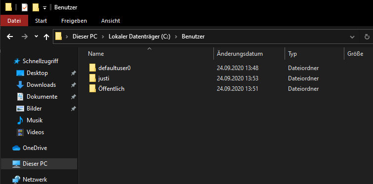 Ich lasse die von Windows angelegten Ordner immer da und lösche da nichts. Das Problem mit dem Ordnernamen "justi" anstatt "justin" hatte ich bei mir auch. Kann aber auch nicht genau sagen woran das liegt. Ich vermute es hängt mit den Microsoft Online Account zusammen. Habe mich aber dann damit abgefunden, dass der letzte Buchstabe fehlt