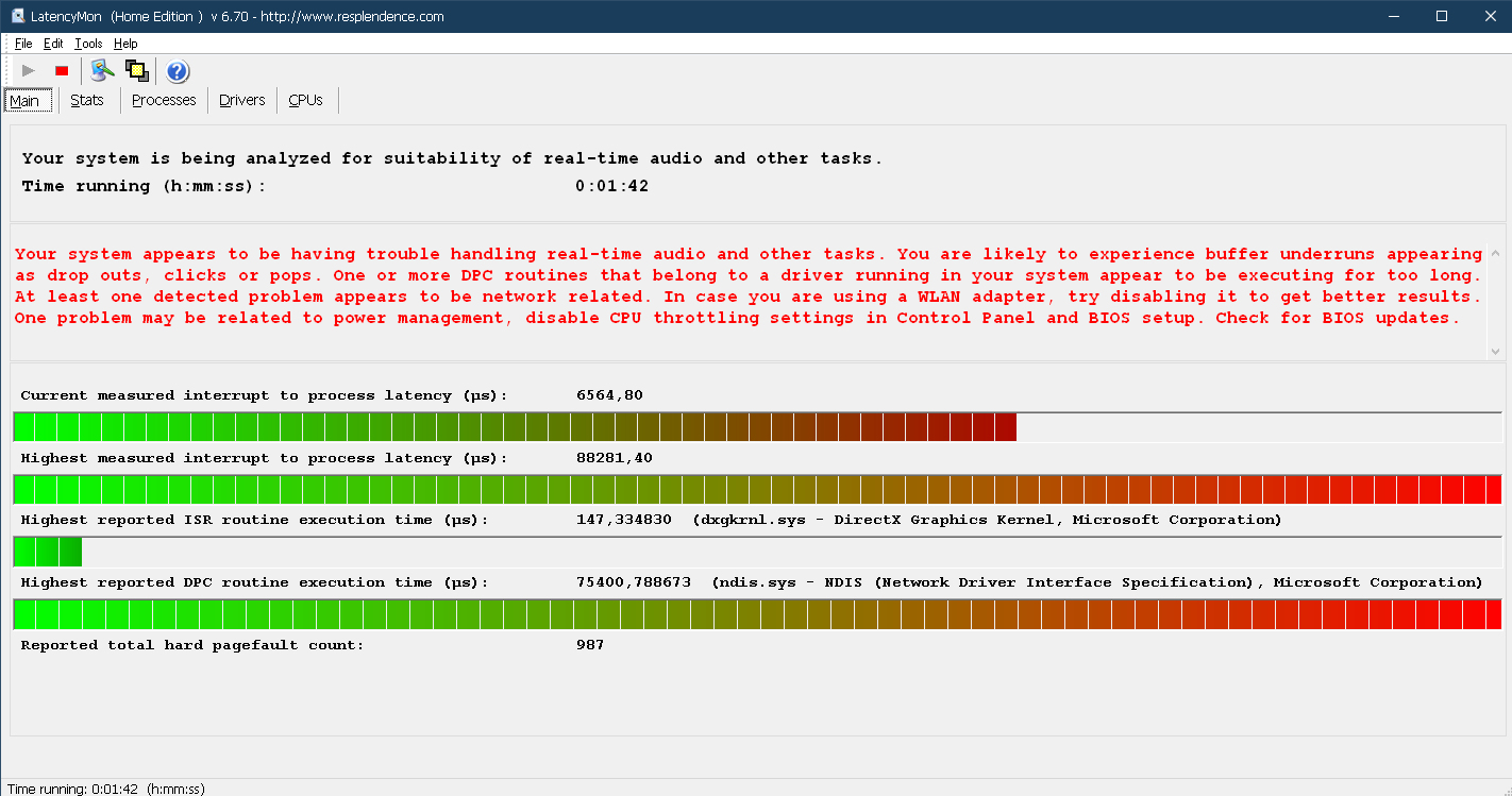 ich habe seit langer Zeit massive Probleme mit der DPC Latenz, was sich folgendermaßen äußert: