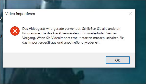 Wenn ich meine Videos mit MovieMaker importieren will, erscheint: "Gerät wird bereits genutzt, beenden sie erst das laufende Programm"