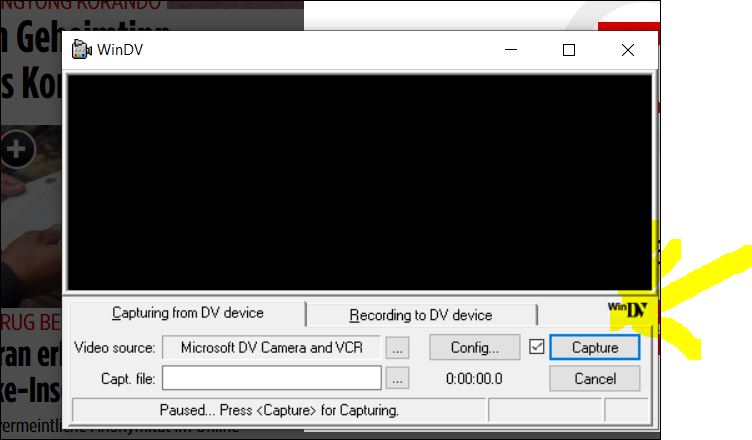 Wenn ich mit WinDV arbeite, kann ich hiermit meine Kamera steuern (d. h., dass sie richtig angeschlossen ist), es werden aber keine Bilder importiert. (siehe Anlage)