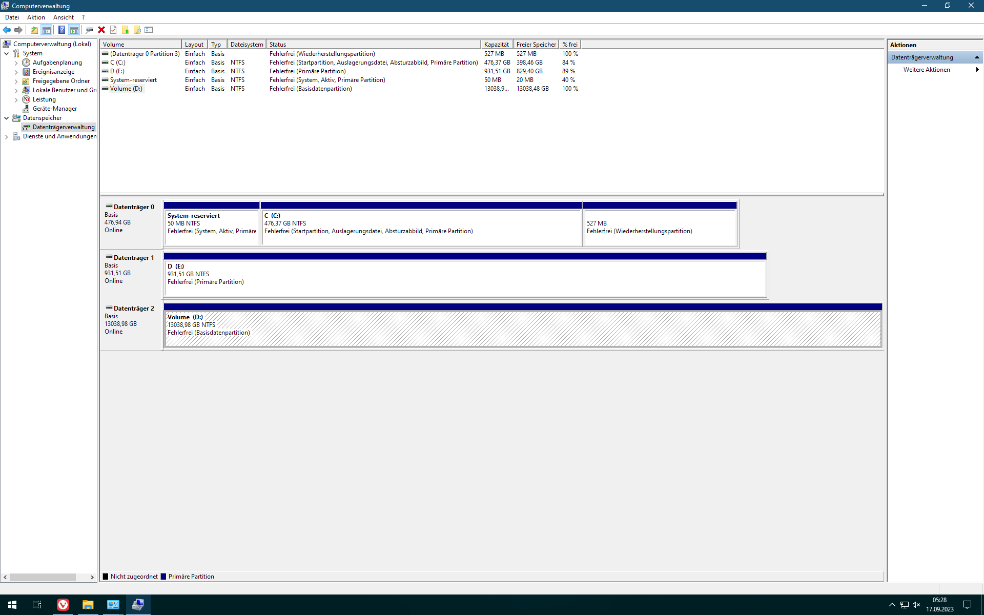 Dann in der Datenträgerverwaltung von Windows 10 das Volume dieser Platte gelöscht und ein neues erstellt.