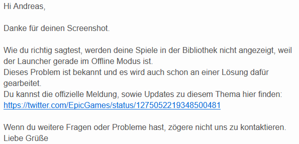 habe folgendes Problem mit dem Epic-Store/Launcher: