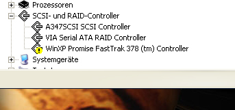 so hab jetzt alles so gemacht wie du geschrieben hast ..PC neu gestartet und denn Windows XP Promise FastTrak 378 Controller installiert nur leider findet der windows die platte nicht und bei Geräte-Manger bekomme gelben zeihen am dem Windows XP Promise FastTrak 378 Controller.. hab ich was vergessen??
