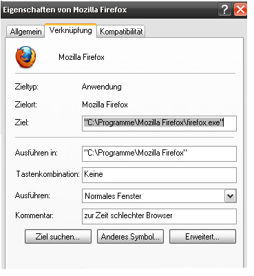 ]" Fehlende Verknüpfung! Firefox exe wird gesucht."