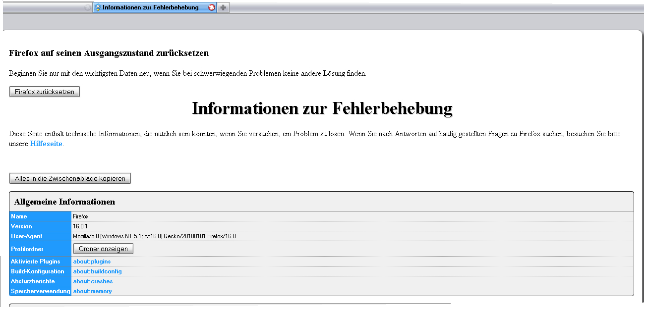 ich habe seit 3 Tagen Probleme mit Firefox 16.2 und dem Betriebssystem Windows XP.