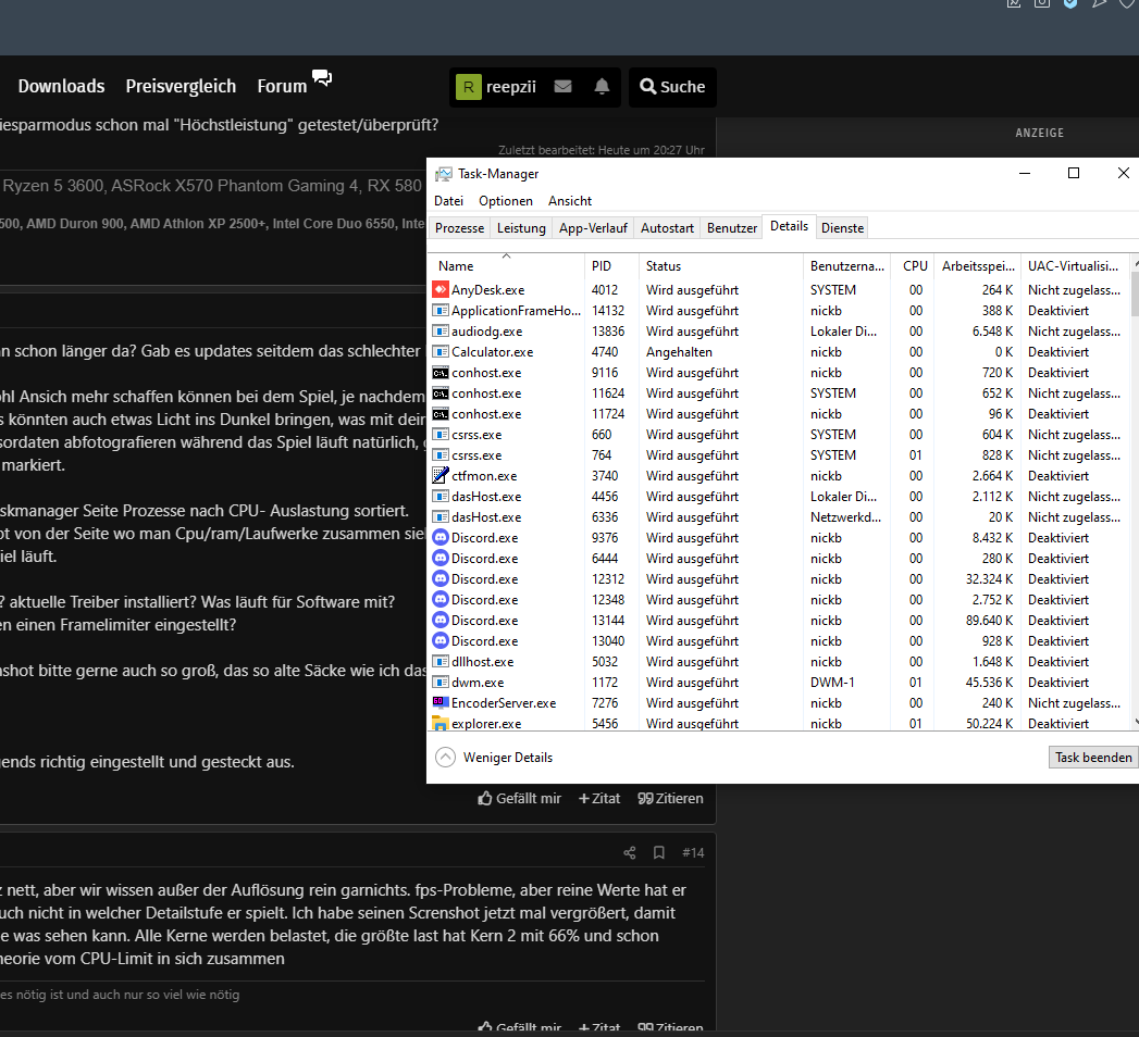 Ich verstehe nicht woran das liegen kann, ich schicke euch mal ein Screenshot von den Werten