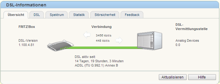Die für uns wichtigen Daten finden Sie im Abschnitt "Anschlussinformationen" bzw. "Anschlüsse". Klicken Sie auf "DSL" und wechseln Sie anschließend auf die Registerkarte "DSL". Je nach Firmware-Version kann die Menüführung oder Bezeichnung leicht abweichen.