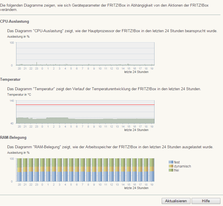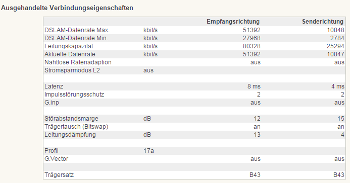 Ich habe die Vermutung, dass etwas an meiner Fritz Box defekt ist. Denn das Bild beim Rauschverhalten gefällt mir gar nicht. Laut Fritz Box habe ich immer 51 Mbit/s. Steht immer dort.