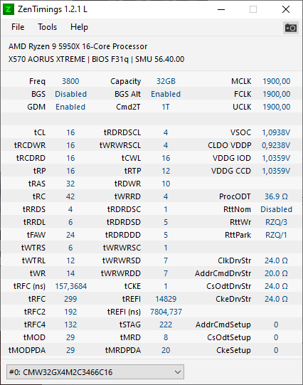 FCLK hab ich für DDR4-3800 auf 1900MHz gestellt, hoffe das war richtig.