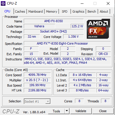 - CPU: AMD FX 8350 8 x 4,0 GHz AM3+
