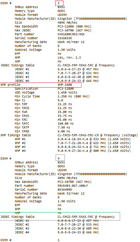 Wenn ich CPU-Z oder HWInfo laufen lassen, zeigen sie mir bei SPD oder im Menu aber bei den beiden Slots die folgenden Nummern an: