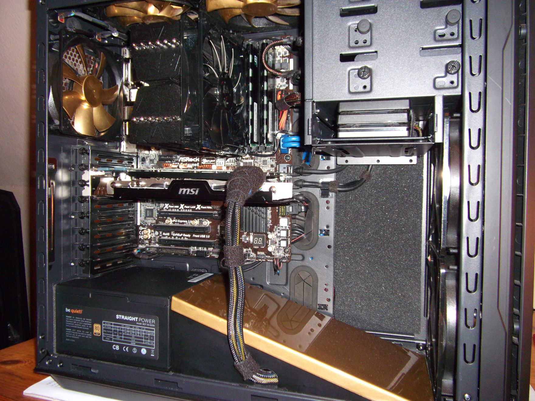 Nein, Temperaturprobleme habe ich keine. Unter Prime wird der i7 3770K ohne Übertaktung maximal 60 Grad warm bei unhörbaren 500 RPM der beiden Radiatorlüfter. Wenn ich allerdings übertakte und mit der Spannung etwas nach oben gehe komme ich auf 70 Grad. Und hier weiß ich jetzt nicht, ob ausblasend dann so gut wäre. Wenn ich mir vorstelle, dass dann 70-80 Grad heiße Luft der Grafikkarte durch den Radiator gepresst werden...