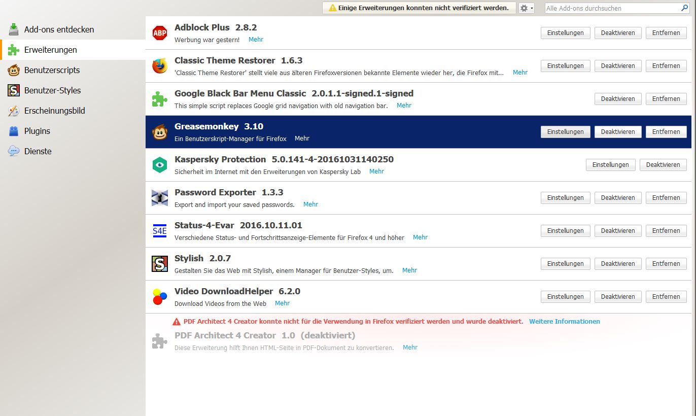 Lach, der Screenshot ist zu geil. Genau, kein Addblocker bis auf Addblock Plus 2.8. Dazu noch ein sinnloses Kasperky und dazu noch ein paar andere Addons die mit der Seite rumfummeln. Die Greasemonkey Scripte sieht man ja leider nicht, aber die können auch gut Seiten zerhauen.