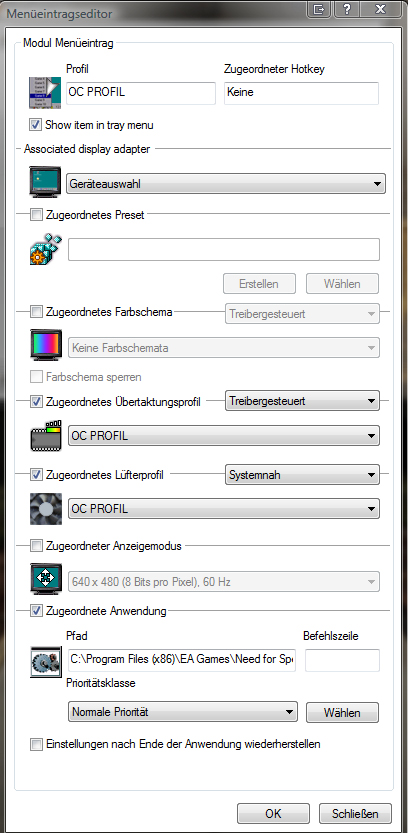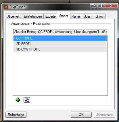 Nun meine 2 Fragenw ie kann ich es machen das Riva tuner bei Performance schluckenden Games wie Crysis oder NFS immer im Übertakteten 3D Modus ist und wenn ich mall CSS zocke in Low 3D was locker für CSS reicht und wenn ich mal nicht zocke oder Programmiere auf 2D umschlatet?