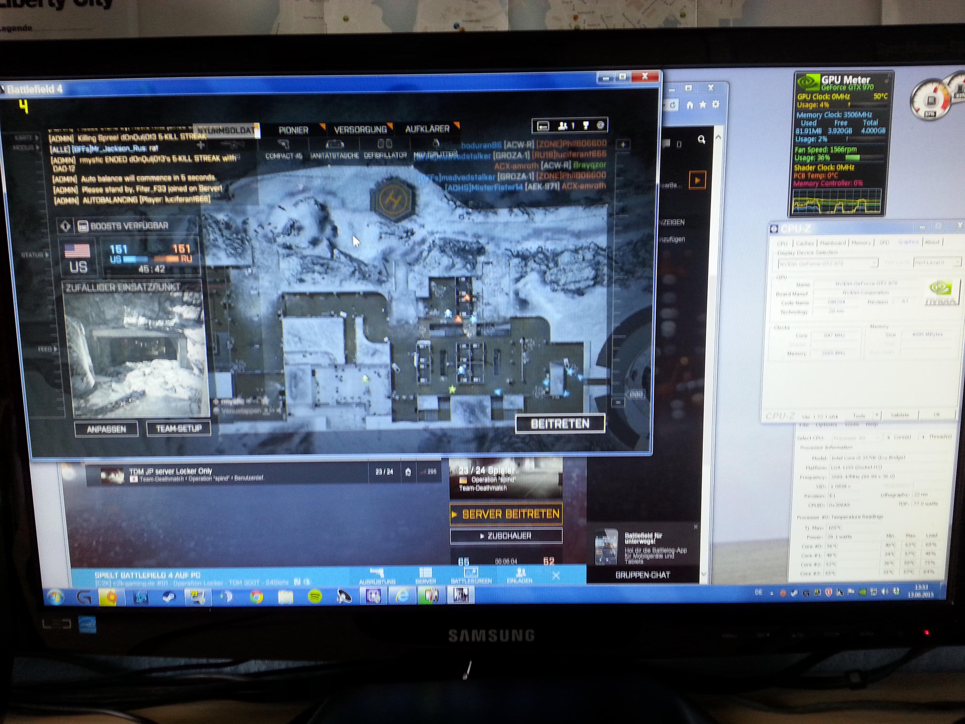 Also erstmal CPU Z angemacht dann das , die 970 gibt den Grafikspeicher frei und besetzt ihn wieder mit BF4 toll gää ?