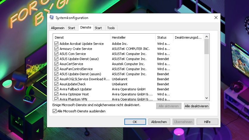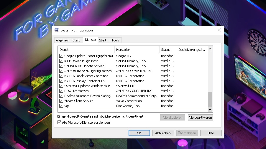 Ich habe parallel auf den Taskmanager die Auslastung geschaut aber dort ist nichts ausfällig so wie auch die Temperaturen alle im Grünen Bereich.