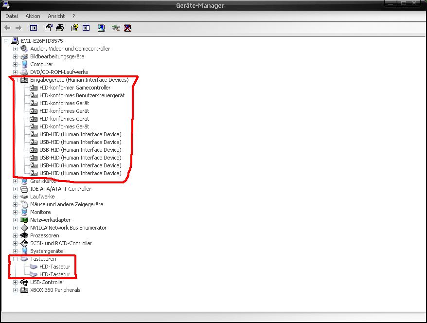 2x die HID-Tastatur mit MS-Treibern im Gerätemanager