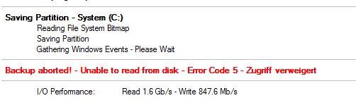 vor ein paar Tagen funktionierte das Backup mit MR noch einwandfrei. Dann habe ich mir neue Hardware (CPU, MB, RAM) eingebaut. Heute wollte ich wieder ein Backup machen und bekam folgenden Fehler: