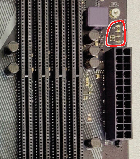 Komme, warum auch immer, NICHT ins BIOS. Lüfter (soweit montiert, laufen. Auf dem Mainboard sind LED's verbaut. Kurz nach dem einschalten des PC's (1-2 Sek.) leuchtet es ROT, danach (ständig) GELB oder ORANGE.