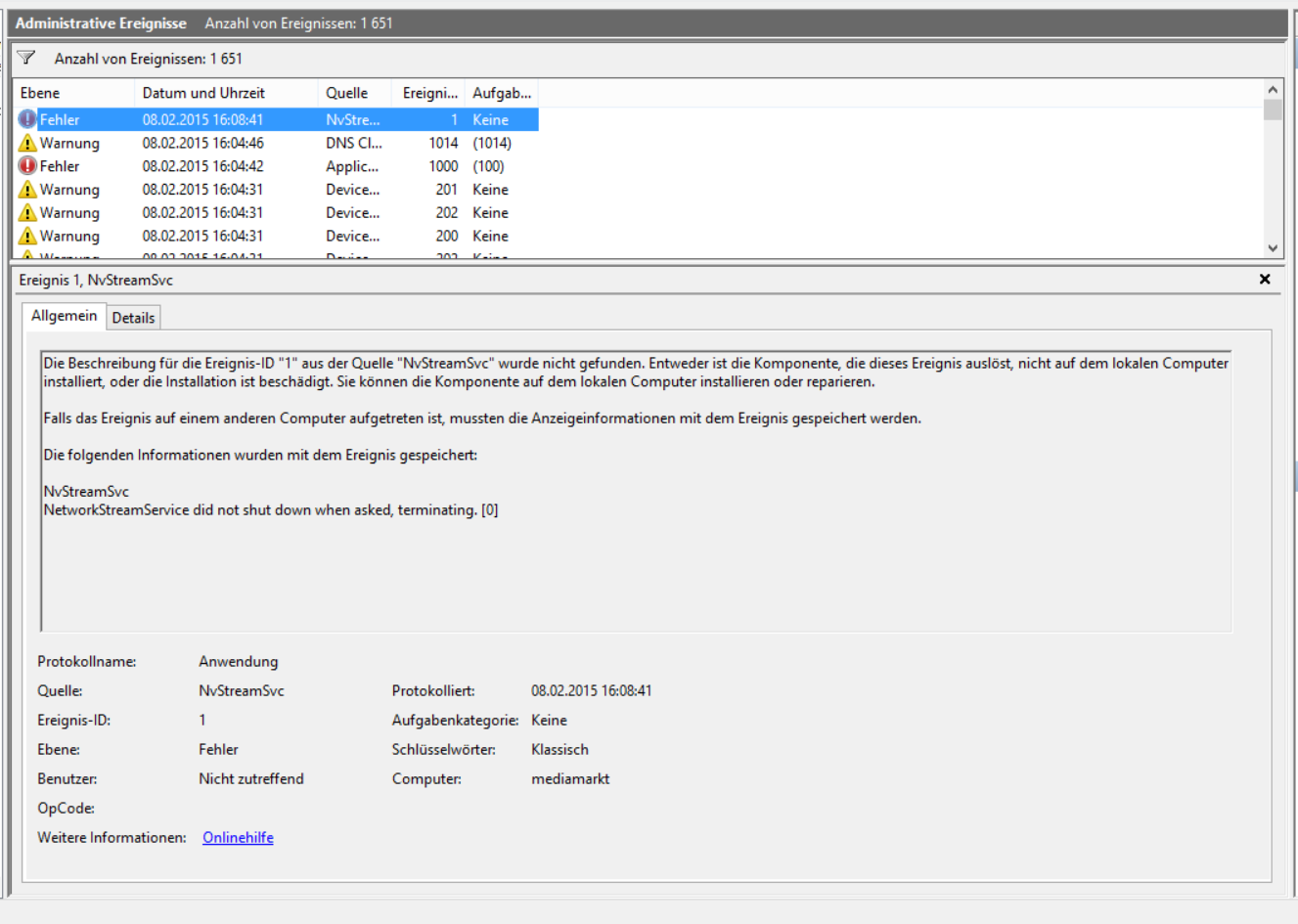 ich hab das jetzt neu installiert und es ist noch kein bluescreen gekommen aber im ereignissprotokoll sind halt solche meldungen da wollt ich fragen was das bedeutet