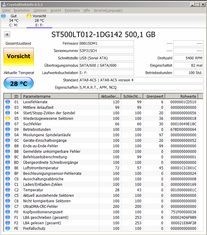 habe ein frage zu meinem Notebook. Und zwar ist es so das ich vor kurzem ein nicht mehr gebrauchtes Notebook von einem freund bekommen geschenkt bekommen habe es handelt sich hierbei um das Medion Akoya E6217 (MD 97718) mit dem Notebook wurde eigentlich nichts besonderes gemacht shoppen auf ebay und bisschen auf facebook und das wars dann auch schon nun habe ich nach dem einschalten festgestellt das bei der HDD gelb Warnstufe angezeigt wird bei Wiederzugewiesene Sektoren siehe bild: