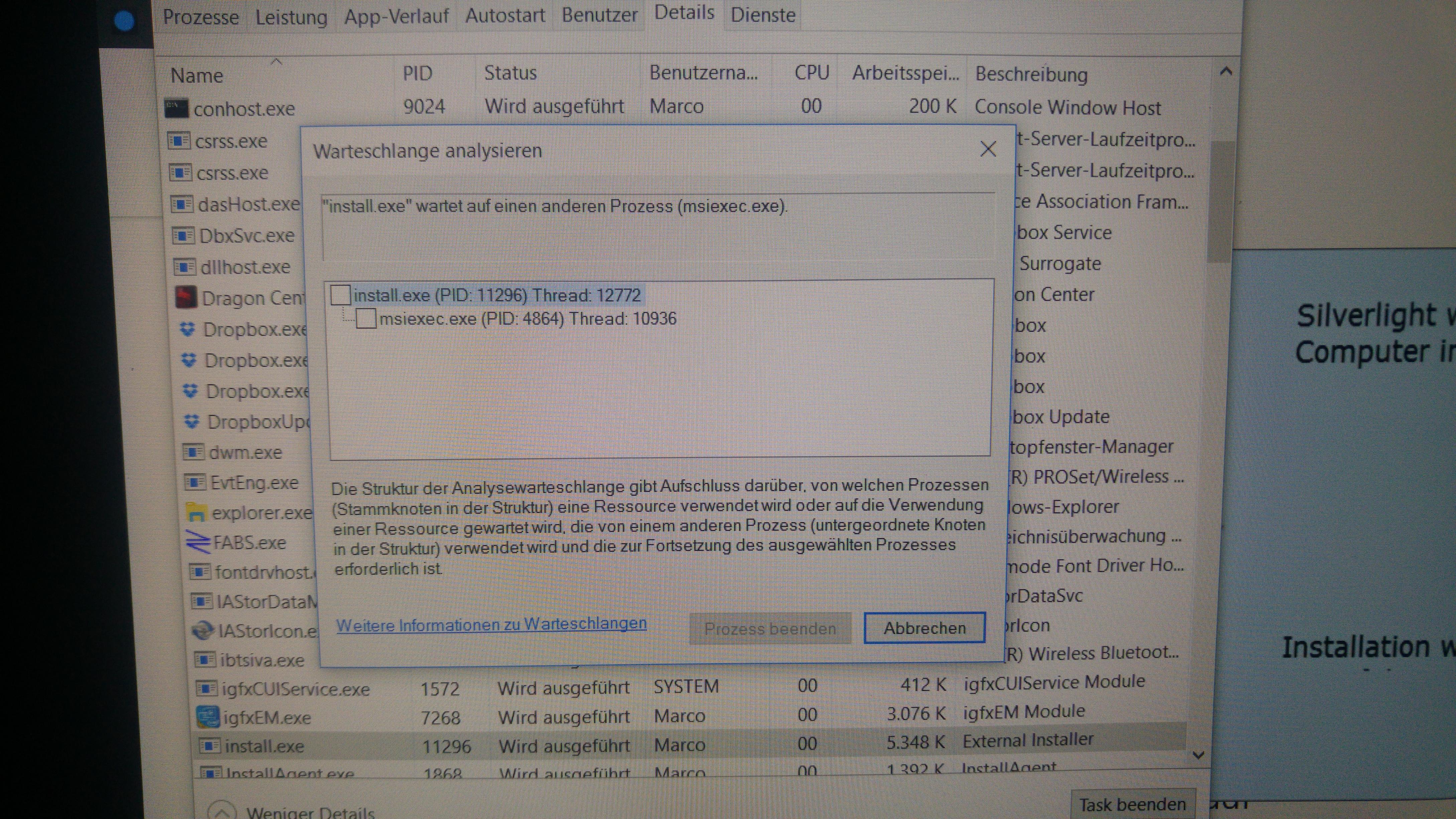 Wegen den Installationsprobleme habe ich trotzdem mal im Taskmanager nachgesehen: